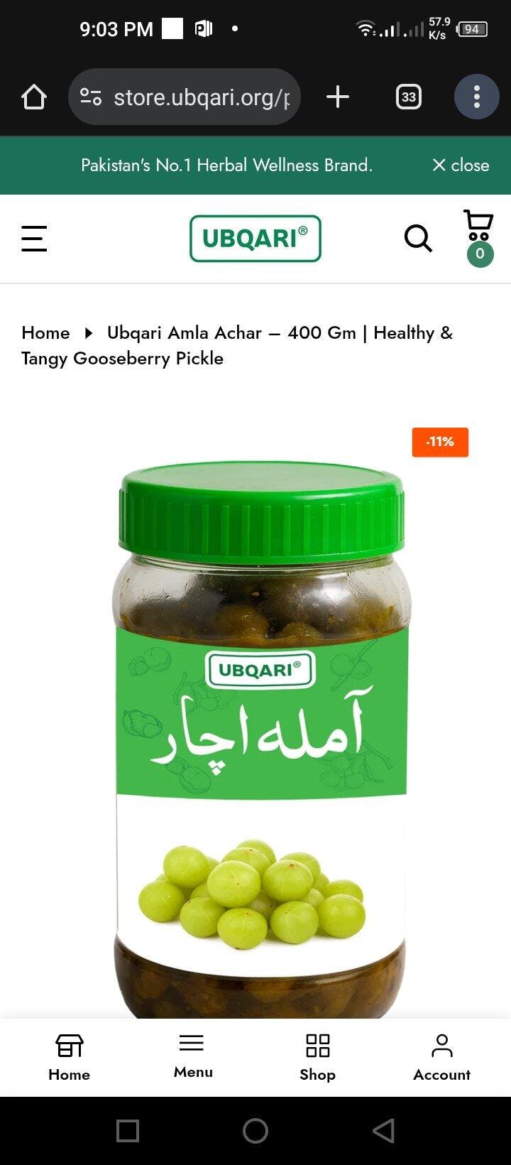 Ubqari Amla Achar – 400 gm | Healthy & Tangy Gooseberry Pickle