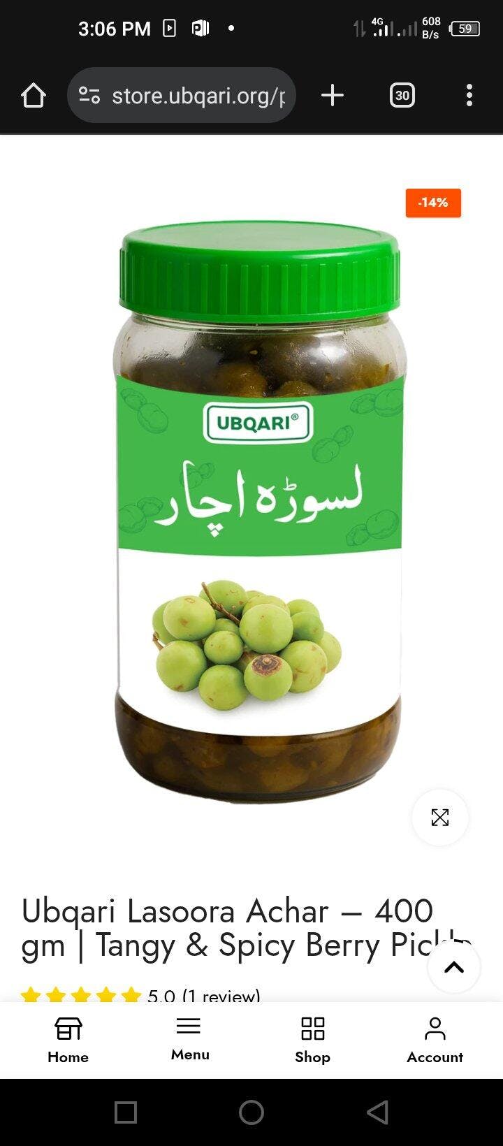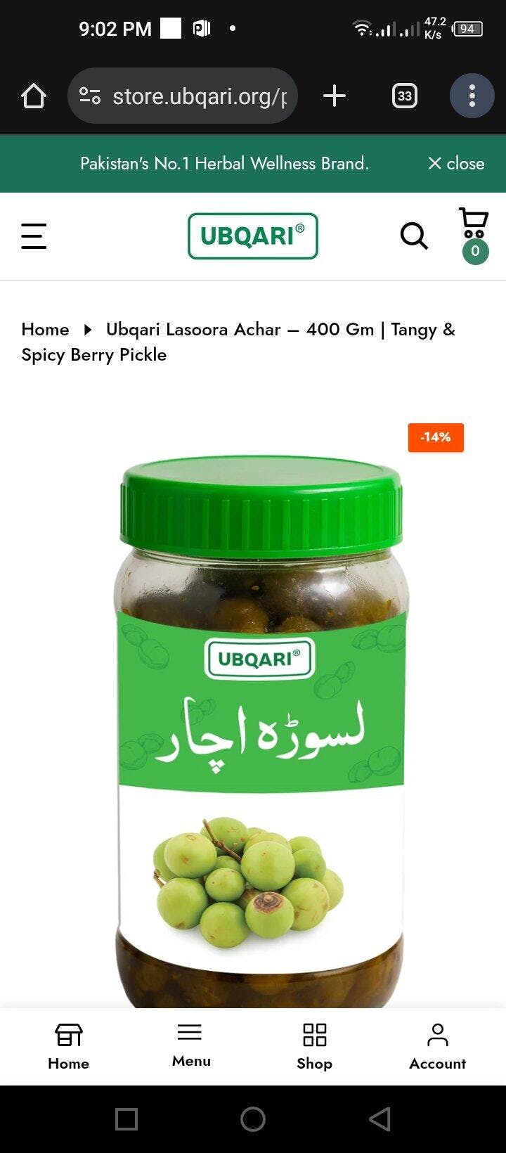 Ubqari Lasoora Achar – 400 gm | Tangy & Spicy Berry Pickle